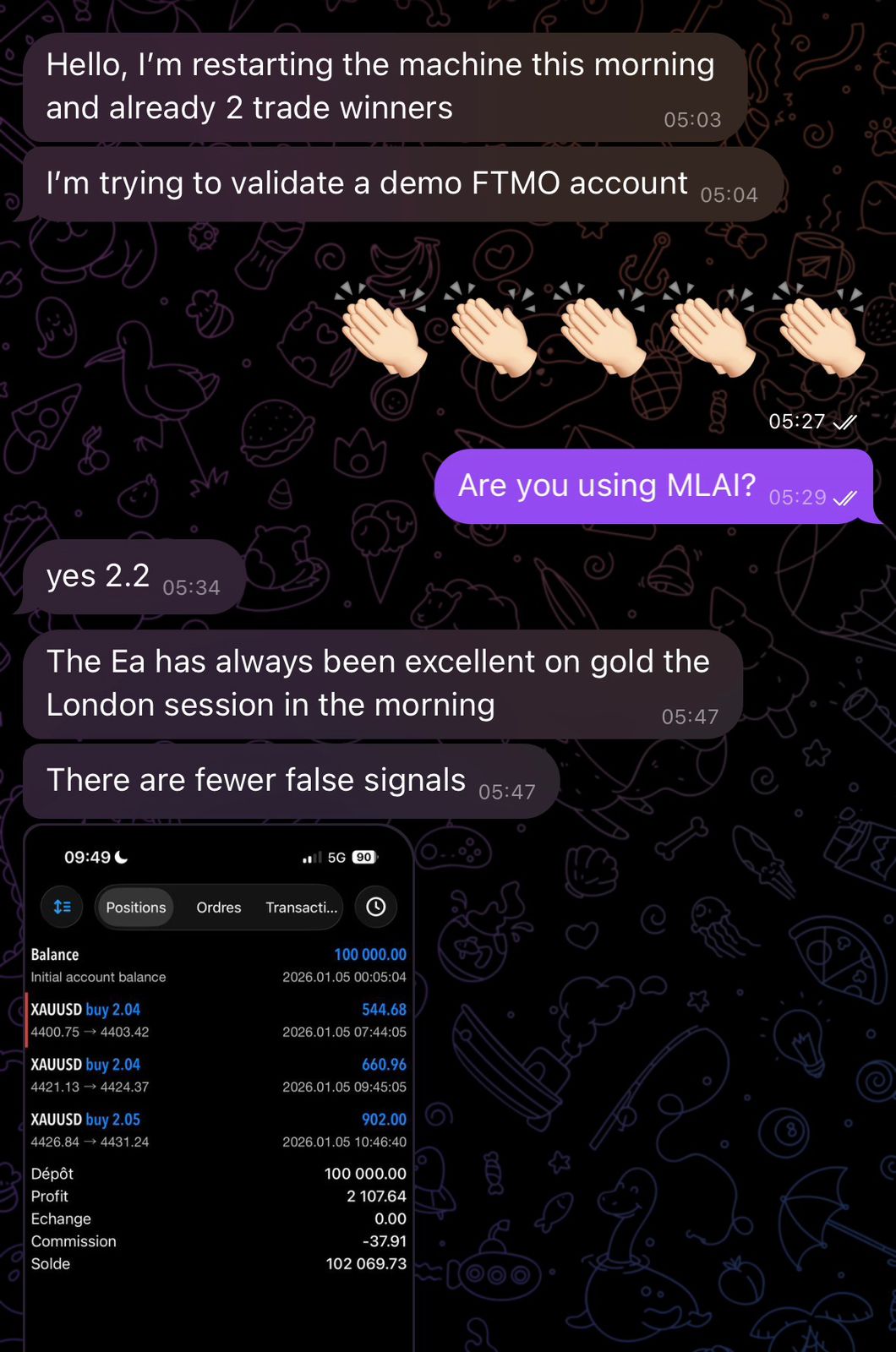 “The EA has all the time been glorious on gold through the London session within the morning. There are fewer false alerts.”