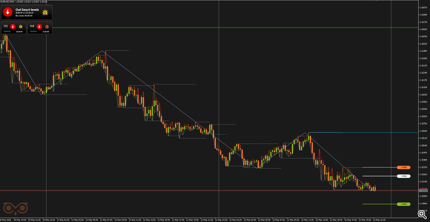 For comfort and well timed receipt of alerts I exploit the Owl Good Ranges Indicator. The principle buying and selling timeframe is M15, whereas the H1 and H4 timeframes are used to verify the pattern course of the upper timeframe.