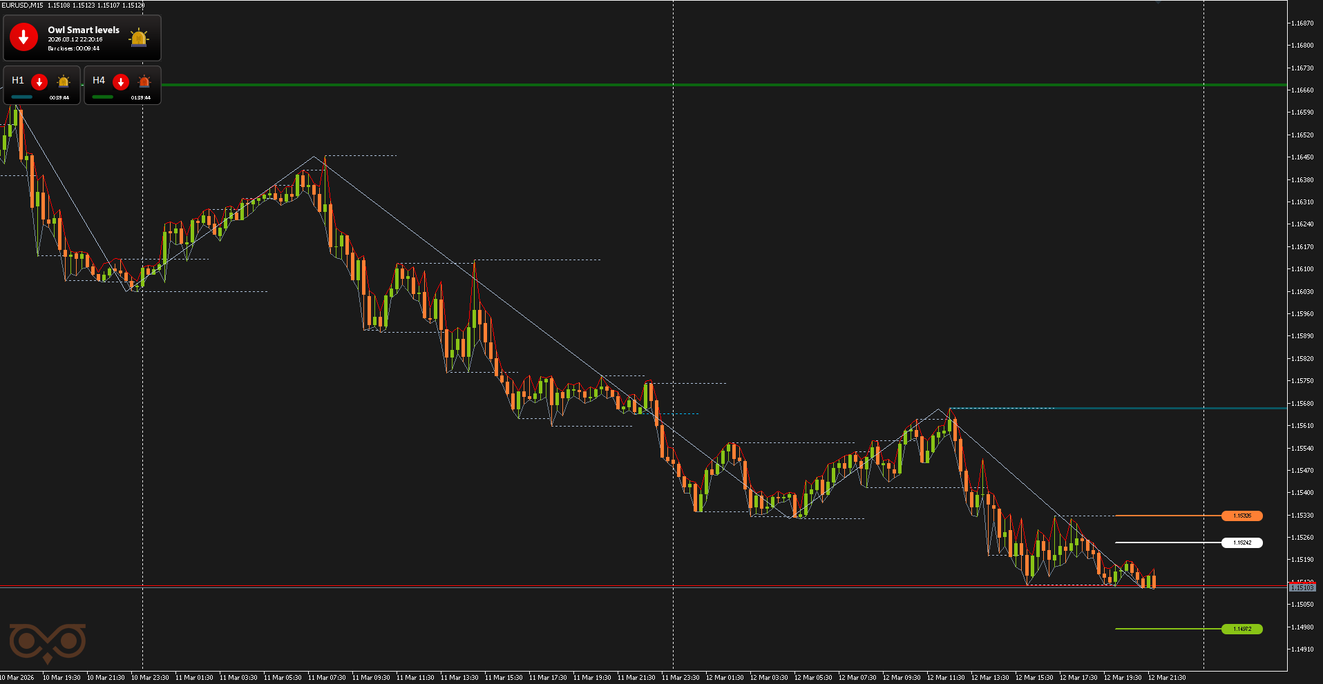 For comfort and well timed receipt of alerts I exploit the Owl Good Ranges Indicator. The principle buying and selling timeframe is M15, whereas the H1 and H4 timeframes are used to verify the pattern course of the upper timeframe.