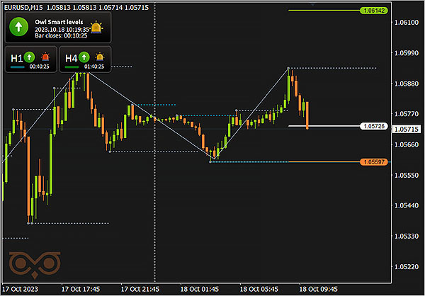 For comfort and well timed receipt of alerts I exploit the Owl Sensible Ranges Indicator. The primary buying and selling timeframe is M15, whereas the H1 and H4 timeframes are used to substantiate the development course of the upper timeframe.