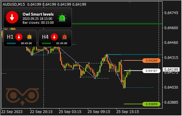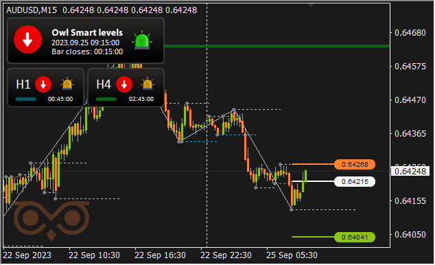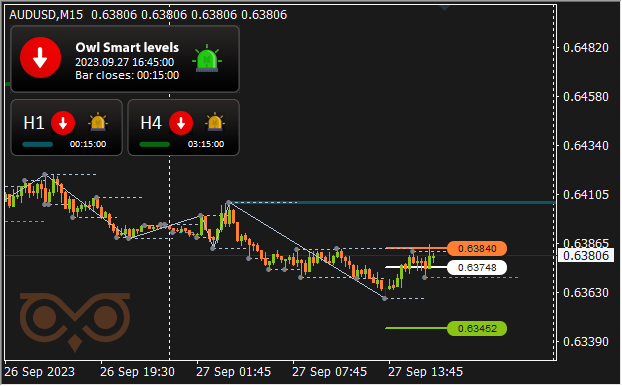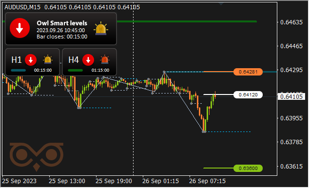 The screenshot reveals that there’s a wrestle of positions on the degree of about 0.63800 and the market is decided with the path of motion. Sadly, the indicator on this scenario didn’t handle to sign in time to cancel the commerce, and it price us minus 17.50$. However by this second, as an instance, trying forward, that the Owl Sensible Ranges indicator has already earned greater than 100$.