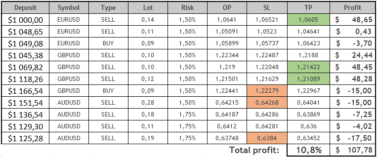 Right here, lastly, the large arrow of the indicator clearly labored, and the commerce was closed comparatively on time with a lack of 7$.