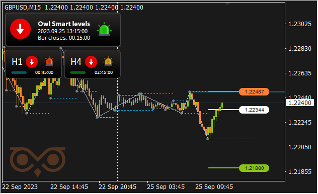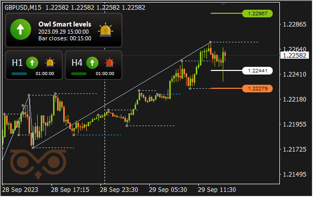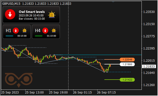 For comfort and well timed receipt of alerts I take advantage of the Owl Sensible Ranges Indicator. The principle buying and selling timeframe is M15, whereas the H1 and H4 timeframes are used to verify the development path of the upper timeframe.