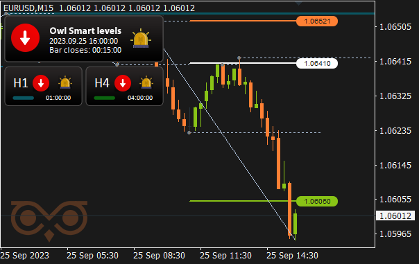 At the moment I current you an outline of trades made utilizing the Owl technique – good ranges for the EURUSD, GBPUSD and AUDUSD foreign money pairs for the week from September 22 to 29, 2023. There have been a complete of 11 trades opened in all foreign money pairs. The Owl Sensible Ranges indicator traded many of the foreign money pairs downward in opposition to the greenback. Basically, the buying and selling turned out to be fairly fashionable, which is favorable for working with our indicator.