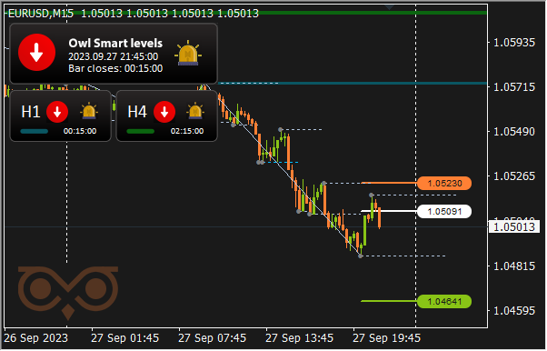For comfort and well timed receipt of alerts I take advantage of the Owl Sensible Ranges Indicator. The principle buying and selling timeframe is M15, whereas the H1 and H4 timeframes are used to verify the development path of the upper timeframe.