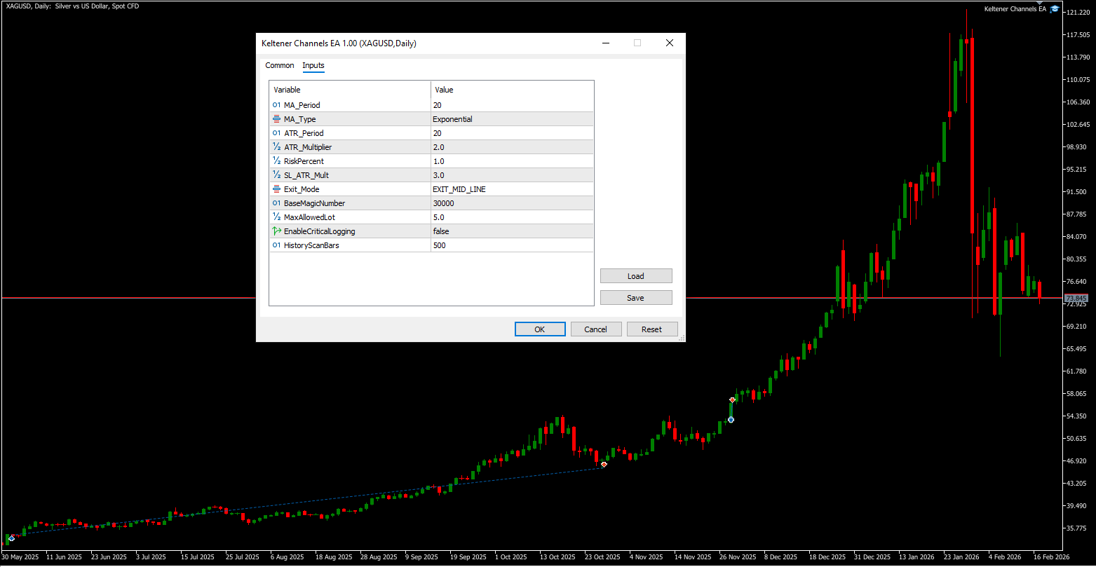 The EA opens, manages and closes trades utilizing precisely the identical sign and exit guidelines because the Keltner Channels Purchase Promote Alerts indicator: