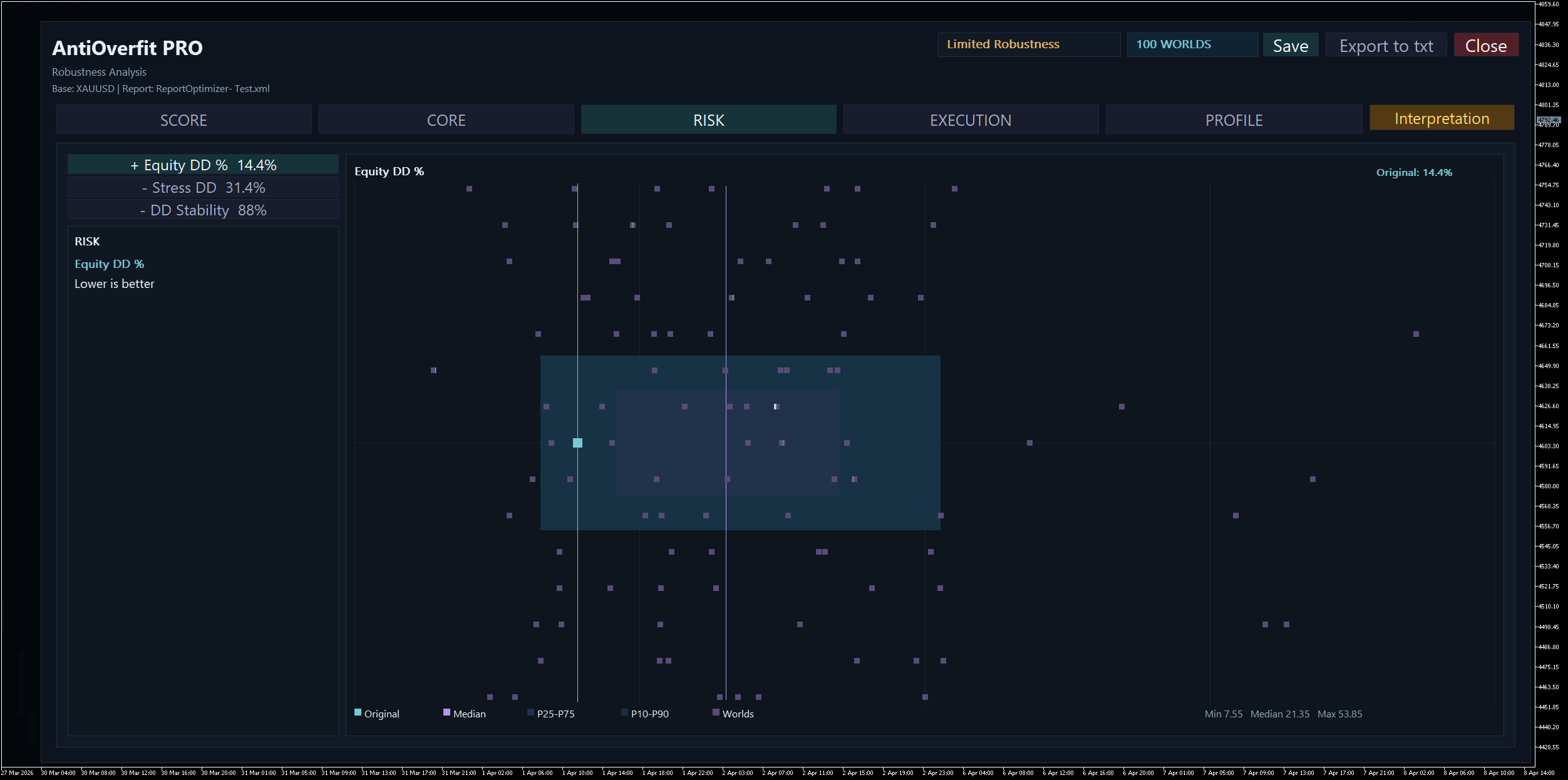 It isn’t sufficient to suppose that this method has a 14% drawdown. What AntiOverfit PRO is exhibiting is that, underneath different however believable situations, the chance could be way more demanding than it regarded when seen solely by way of the unique historical past.