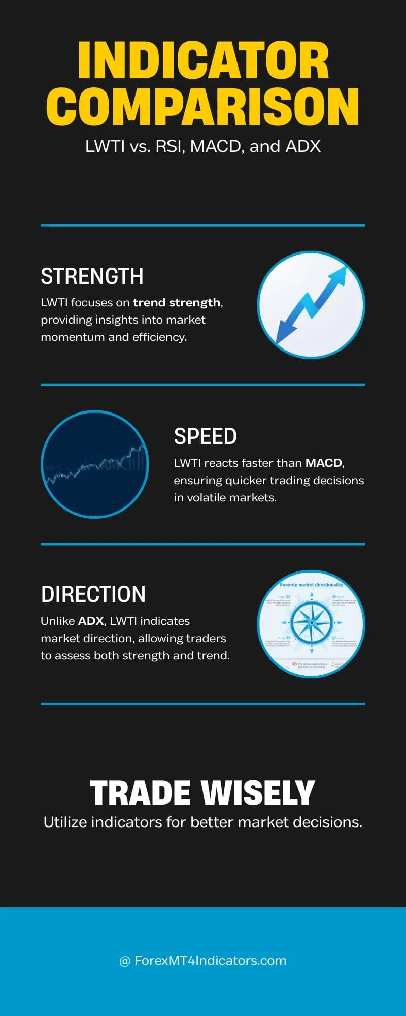 In opposition to MACD, LWTI reacts quicker as a consequence of its weighted calculation. MACD smooths value extra, which helps on larger timeframes however lags on intraday charts.