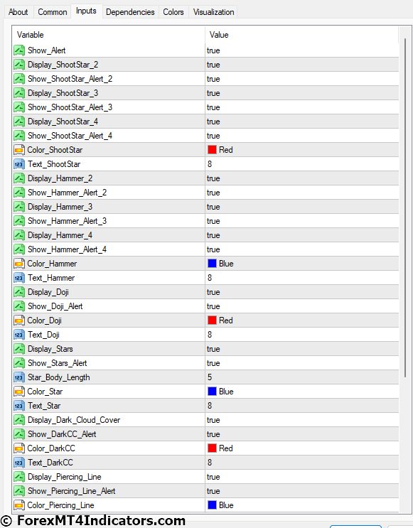 Sample Recognition Grasp MT4 Indicator Settings