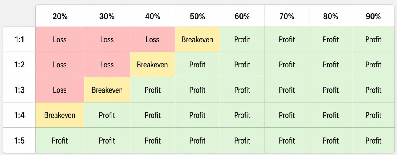 Check out the desk of win charges and risk-to-reward ratios. It shortly illustrates the important thing concept: a technique’s profitability relies upon not solely on the share of profitable trades, however on how a lot every robust commerce brings relative to the loss.
