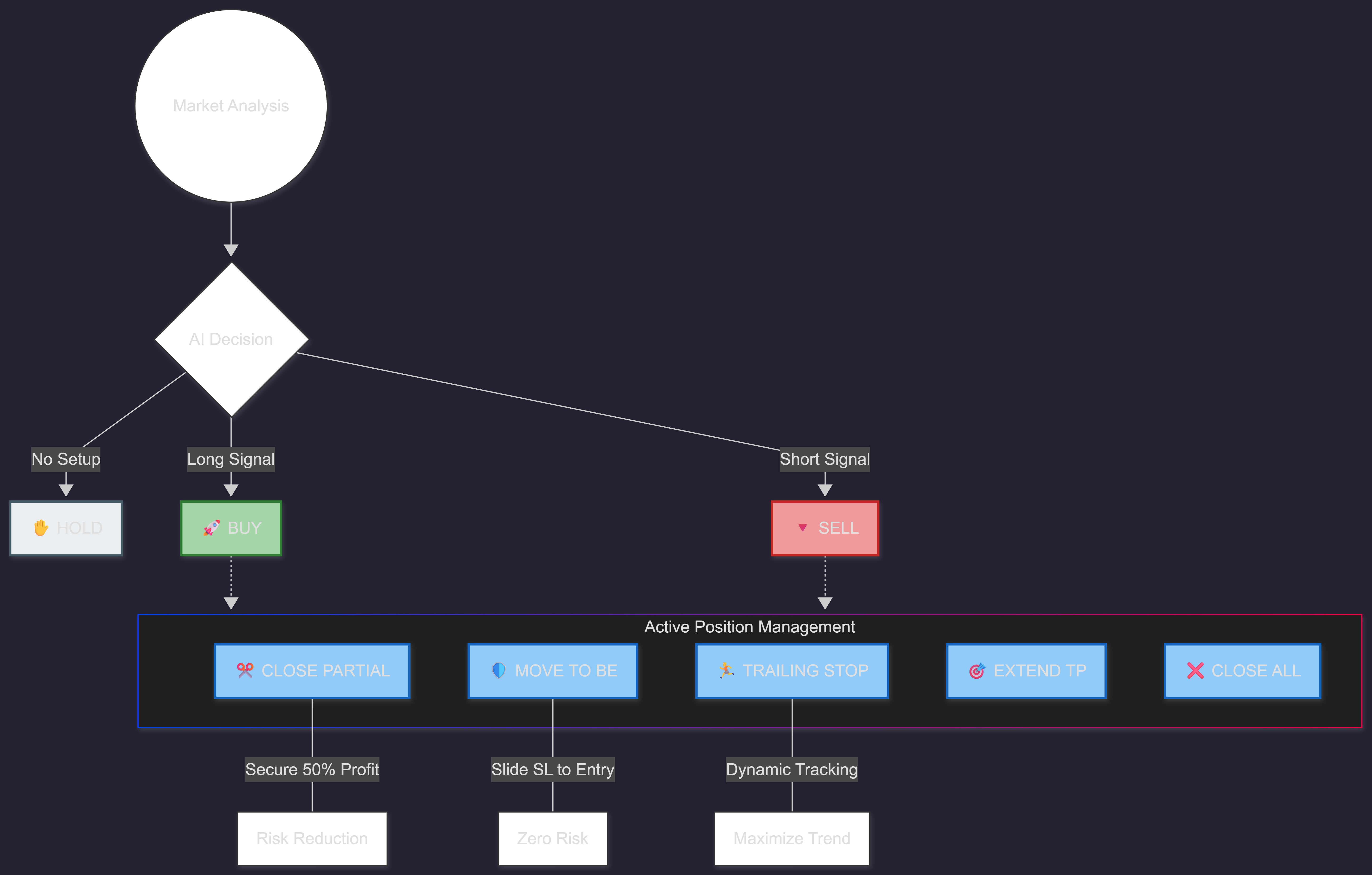 Commonplace EAs are binary (Purchase or Promote). NEXUS operates in a steady setting with 8 Discrete Actions, permitting it to handle positions like a human dealer: