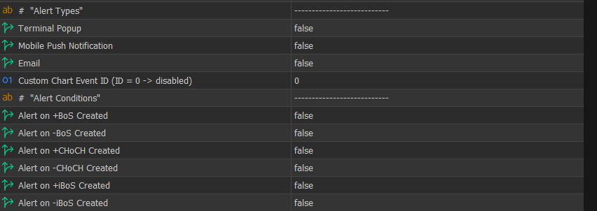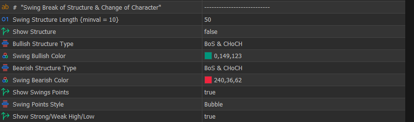 Present Construction – Allows or disables swing BOS and CHoCH.