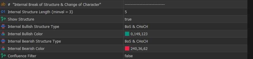 Inside Construction Size – Defines what number of candles are required to substantiate inside highs and lows, the place decrease values present sooner indicators with extra noise, whereas greater values delay affirmation and produce cleaner construction; scalpers usually choose decrease values whereas swing merchants choose greater values.