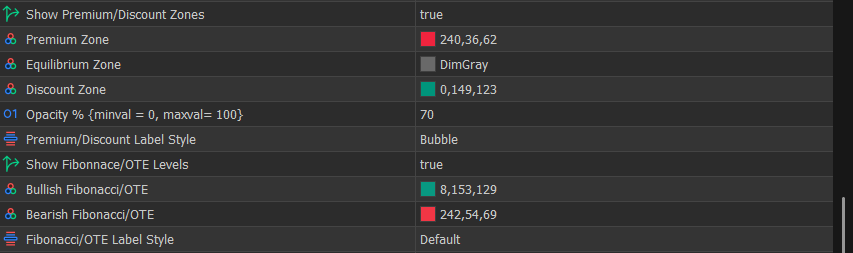 On this indicator, the vary is calculated utilizing swing highs and lows, making premium and low cost adaptive to present market circumstances reasonably than static.