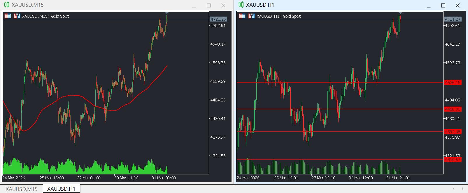XAUUSD Technical Evaluation: April 1, 2026 | H1 & M15 Complete Breakdown