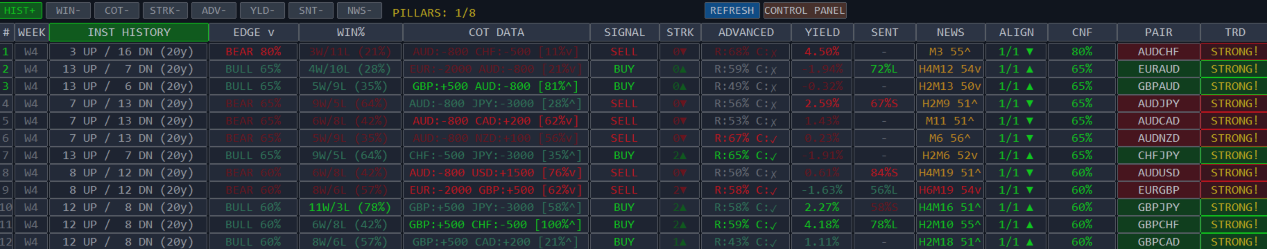 📈 WIN (20%) 🏛️ COT (20%) 🔥 STRK (20%)